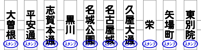 • 東別院 矢場町 栄 久屋大通 名古屋城 名城公園 黒川 志賀本通 平安通 大曽根