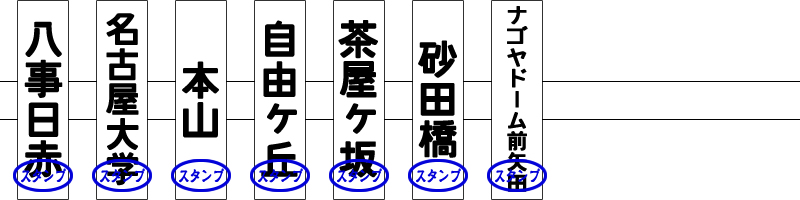 • ナゴヤドーム前矢田 砂田橋 茶屋ヶ坂 自由ヶ丘 本山 名古屋大学 八事日赤