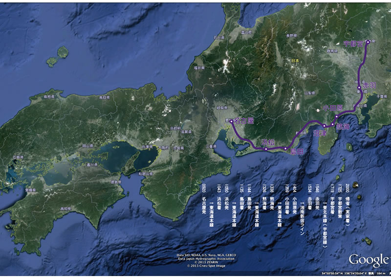 浜松、島田、熱海、小田原と東海道本線を乗り継いでゆく。