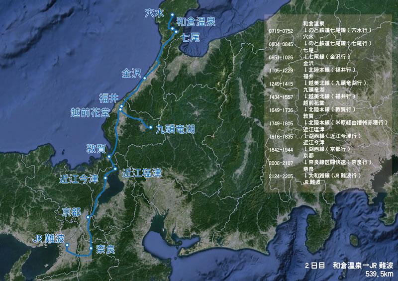 敦賀に着いた後は近江塩津→近江今津→京都と乗り継いでいく。