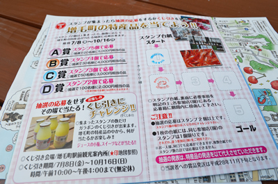 町のお店を利用するとスタンプ1個。2つ集めてD賞に応募。