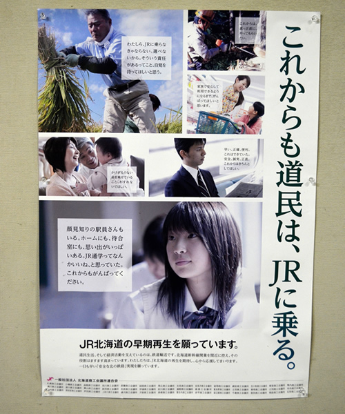 さて、この南小樽ではこんなポスターが掲示されていた。廃線、廃駅、減便が進むJR北海道。そういったことを食い止めようと、沿線住民の切実な願いが伝わってくる。