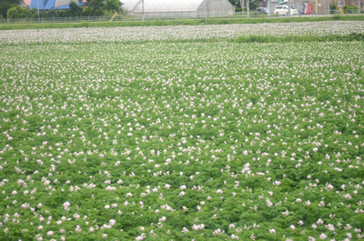 後ろの座席のJD曰く、ジャガイモの花。