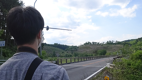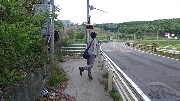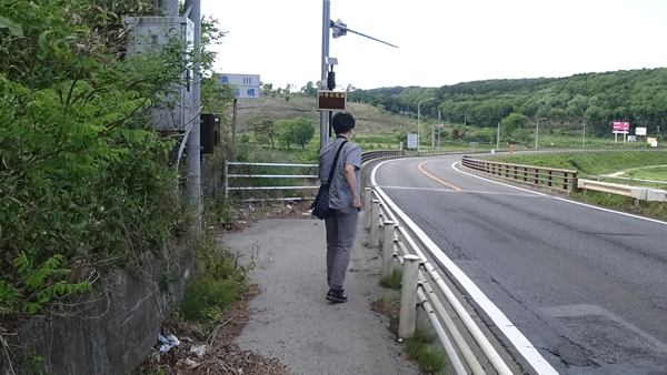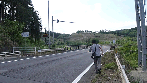 ところでこの県境は1ケタ国道ということもあって、乗用車やらトラックやらビュンビュン通り過ぎていくのだ(彼らはストーリーに全く関係のない要素なので、演出としては正しい)。彼らとしては本来いるはずのないところにカメラを持った人間がいることになるので、だいぶ奇特な目で見られた。