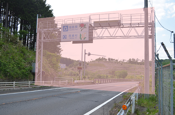 改めて現在地を確認しておこう。次の地図は上が福島方面、下が栃木方面となっていて、自分のいる場所にピンを打ち、標識の掲げられたゲートを赤線で記した。