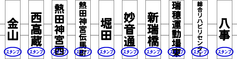 • 八事 総合リハビリセンター 瑞穂運動場東 新瑞橋 妙音通 堀田 熱田神宮伝馬町 熱田神宮西 西高蔵 金山