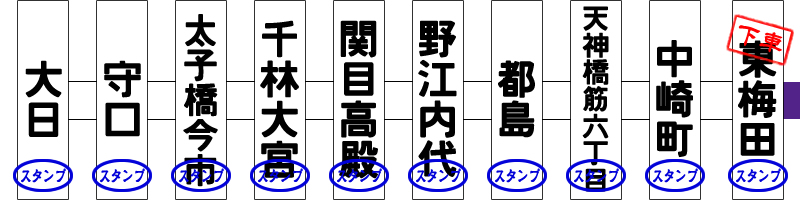 • 東梅田 中崎町 天神橋筋六丁目 都島 野江内代 関目高殿 千林大宮 太子橋今市 守口 大日
