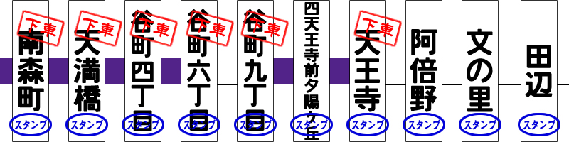 • 田辺 文の里 阿倍野 天王寺 四天王寺前夕陽ヶ丘 谷町九丁目 谷町六丁目 谷町四丁目 天満橋 南森町
