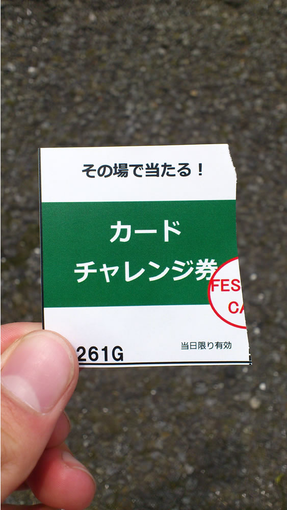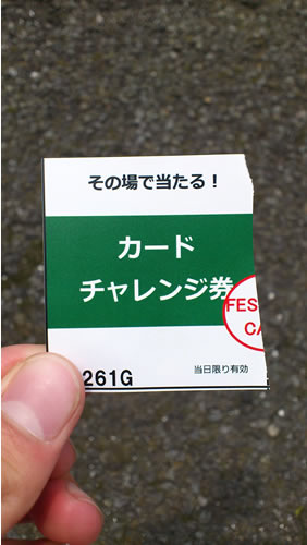 カードチャレンジ券。これと引き替えにテイルズオブキズナで使えるカードを1枚貰えるらしい。